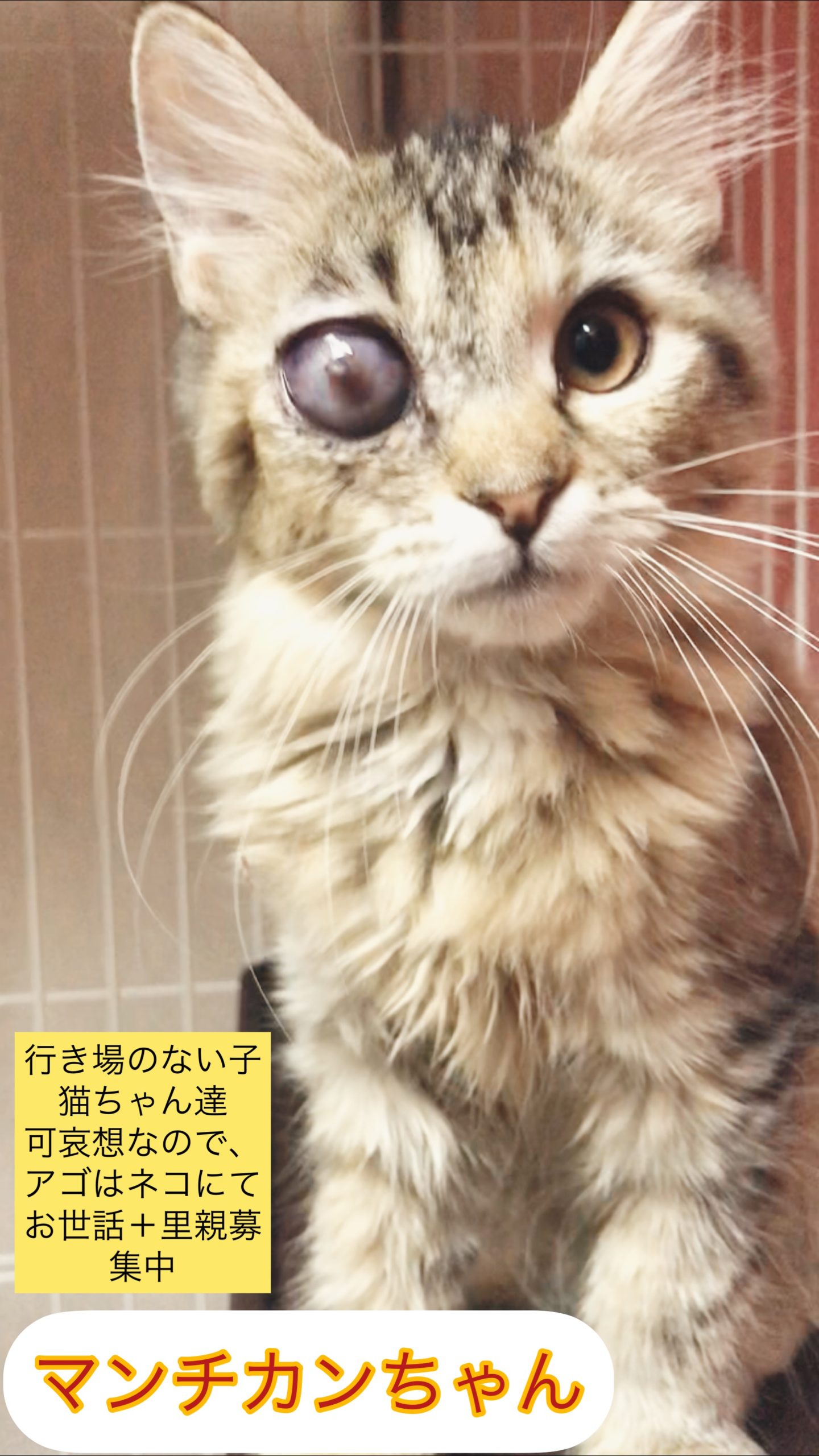 目にハンディのある猫ちゃんなどは、応募される方がほぼいらっしゃいません。(涙)