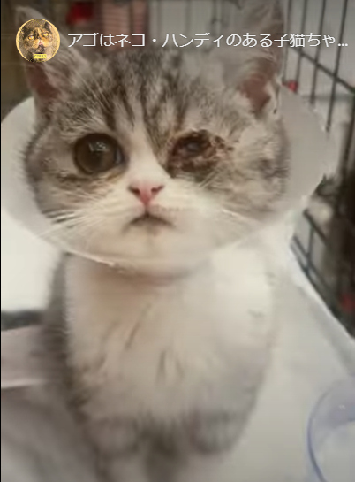里親の訳→片目の手術をしました。現在は以前の状態よりは、良くなっています。