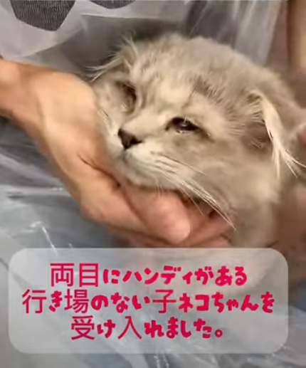 里親の訳→両目にハンディがあり行き場のない子です。