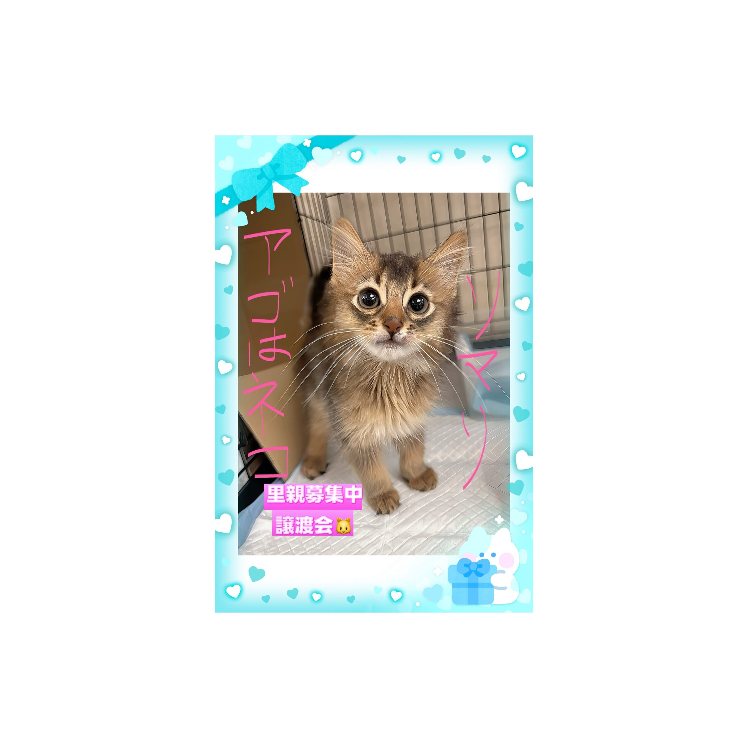 (ここ最近里親の子達が多くなっており・レスキュー里親ネコちゃんなどもおりますので、譲渡までのスパンが、通常よりも短くなるケースがございます。)