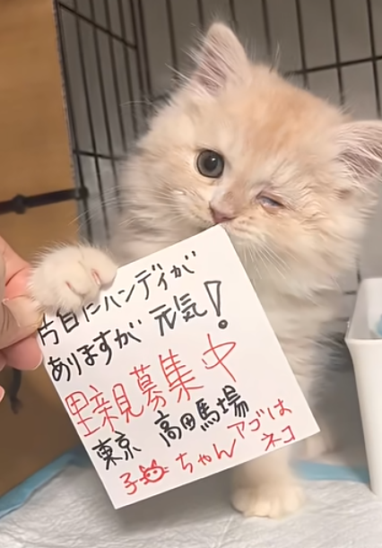 里親の訳→片目にハンディがあります。